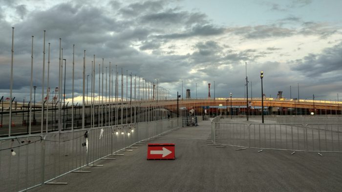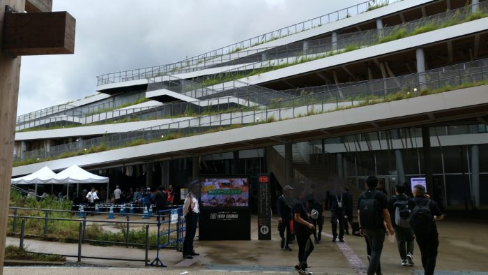 実はこの日、台風が接近中でした。いつもはゲートにある各国の国旗が、飛ばされないようにとの配慮で撤去されていました。