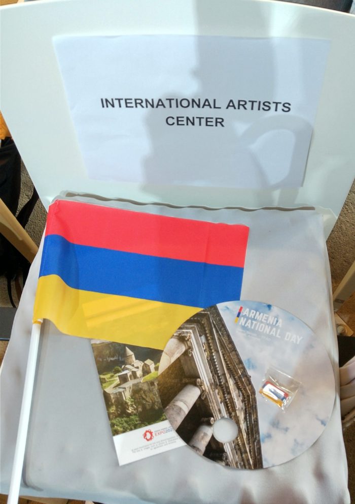 席に置かれたアルメニア・デーのお祝いグッズ