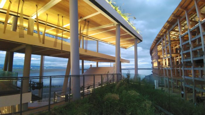 夕暮れのレイガーデンと大屋根リング