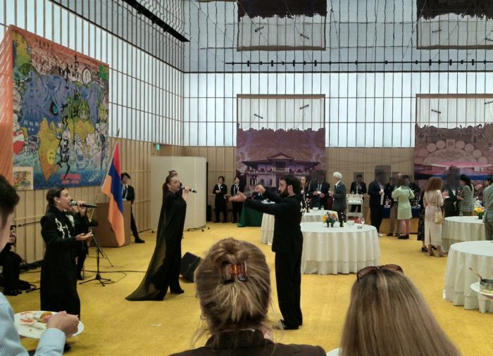 優雅な雰囲気の中オペラ歌手の歌声を聞きながら舌鼓。お料理はというと、高級ホテルのケータリングの他、アルメニアの伝統料理ガパマが特別にふるまわれました。