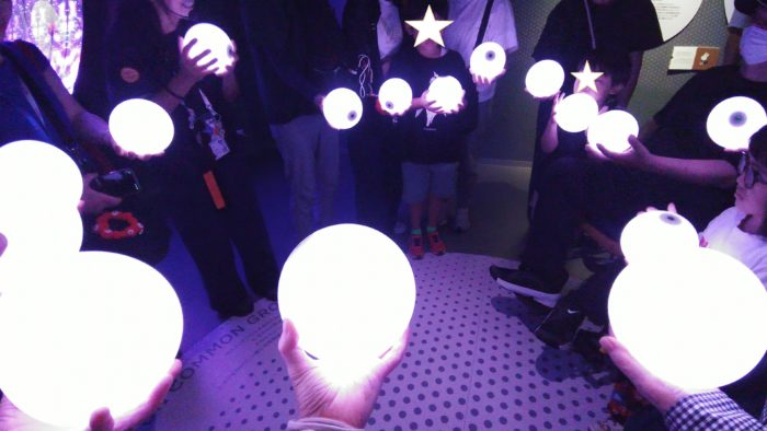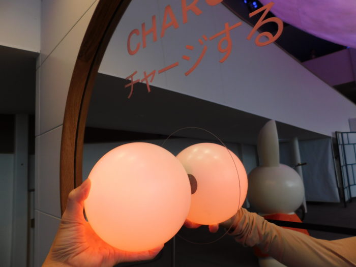 展示のほうはどうかというと、来場者一人ひとりにオーブが手渡されます。まずここでエネルギーをチャージして・・