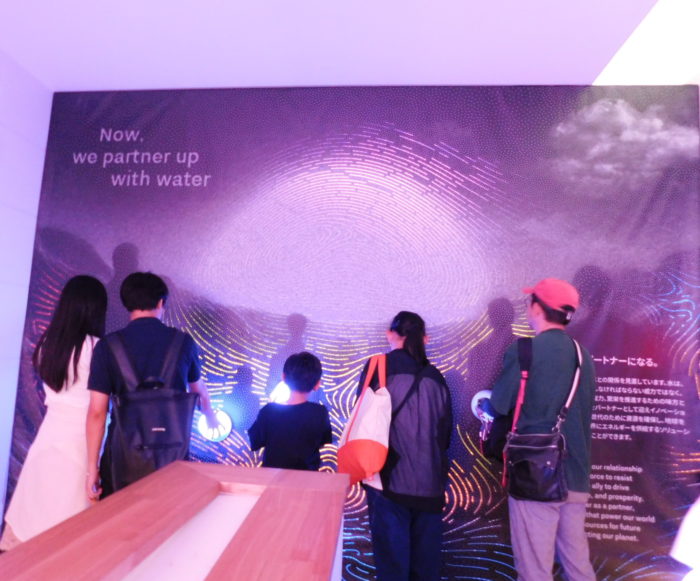 中に進んでいくと、「Today we must work with nature (今こそ、私たちは自然と協力しなければならない)」というメッセージが。そして、オランダと水との関係を紹介する展示いくつかが現れます。ここでもチャージをするのですが、なんと今までオレンジだったオーブが青色に変わります。