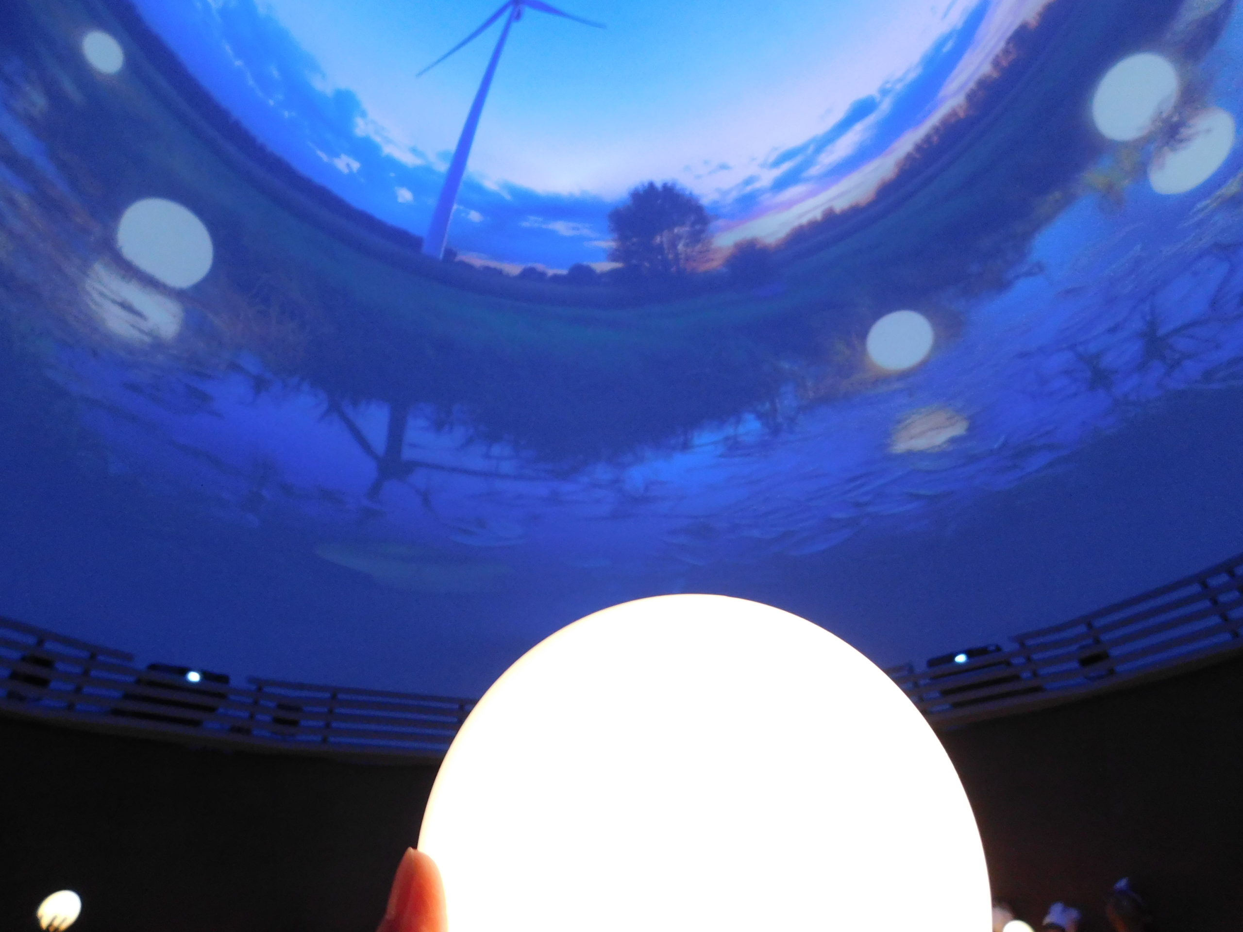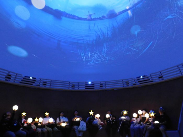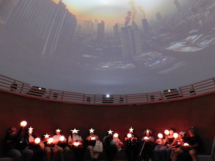 次に通されたのはプラネタリウムのようなところ。映像が天井いっぱいに広がります。